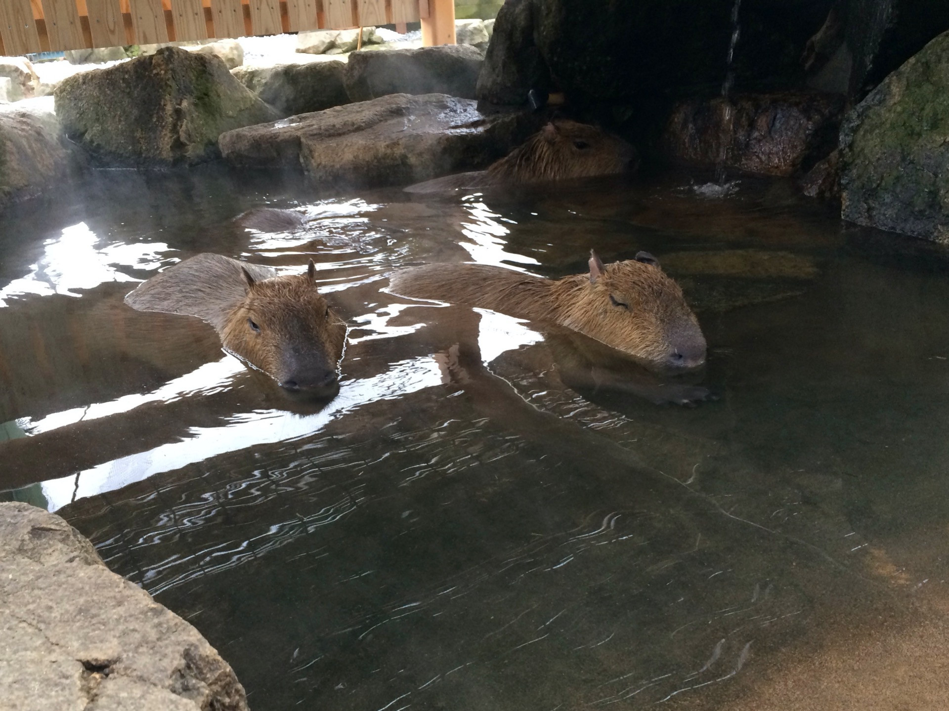 写真は姫路セントラルパークのカピパラ温泉です。目をつぶって気持ちよさそう。