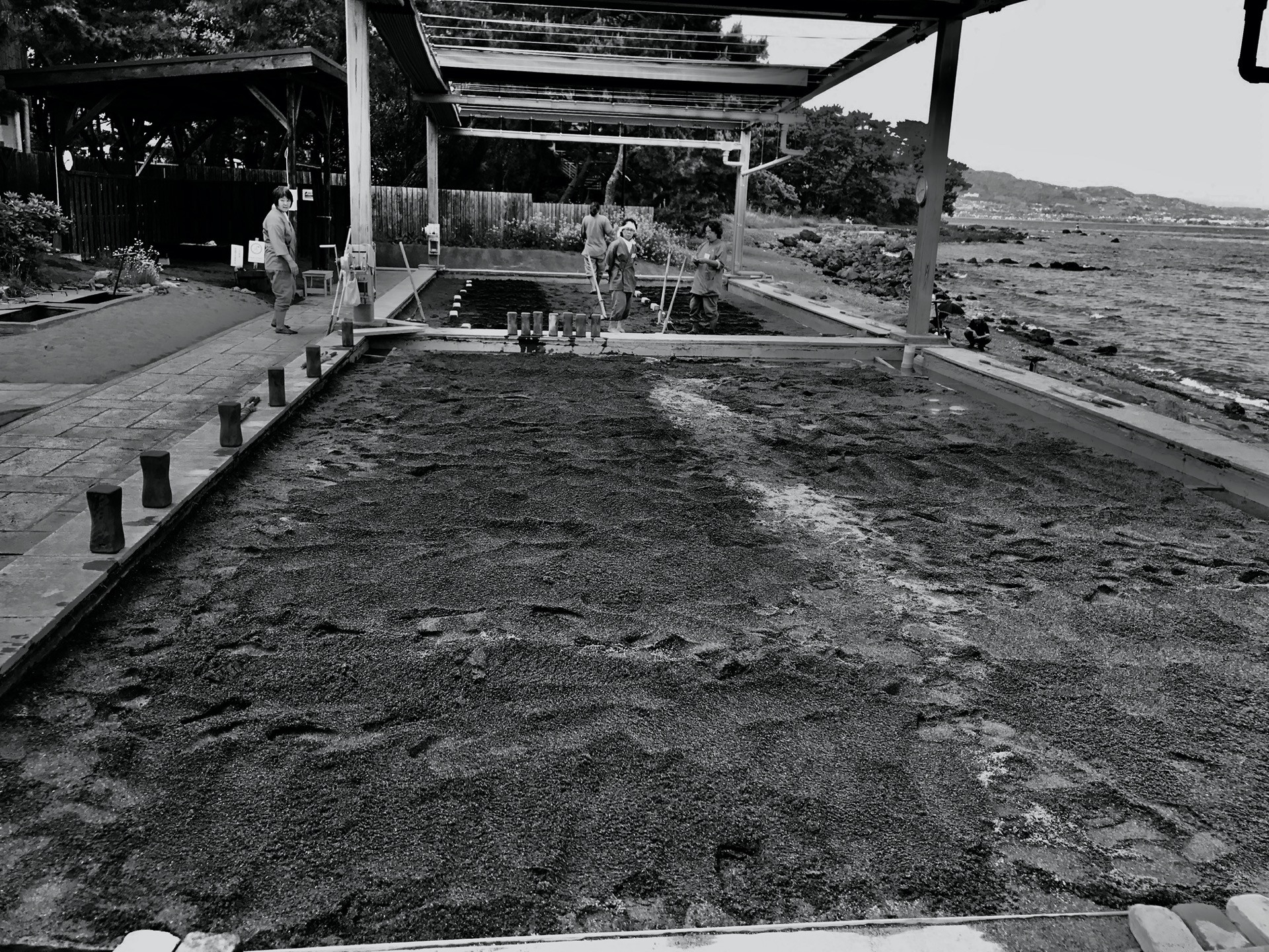 砂湯は、予約制で、浴衣に着替えて、砂に埋めてくれます。海が見えていいのですが、暑い。重い。それぐらいしか覚えておりません。埋めてくれた人が、写真を撮ってくれるのですが、砂に埋もれた私の顔など、絵面最悪なので、今回はこちらの写真で。