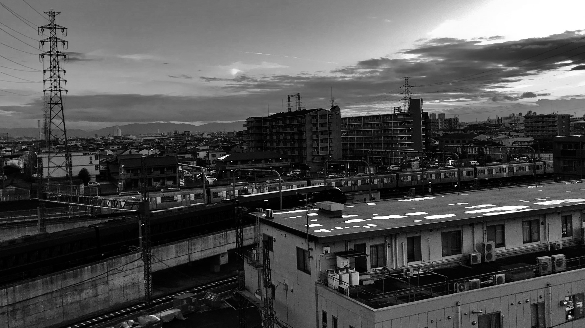 久しぶりに白黒にしてみたらかっこいい夕景になったので。。すこし昭和感ですが。。