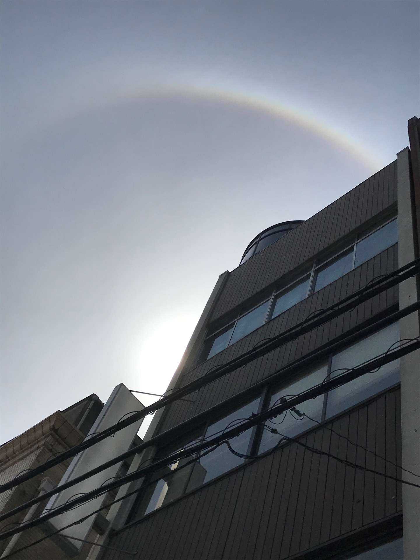 こないだの二重の虹はほんとに虹って感じでしたが、太陽の周りにできるこういうやつは