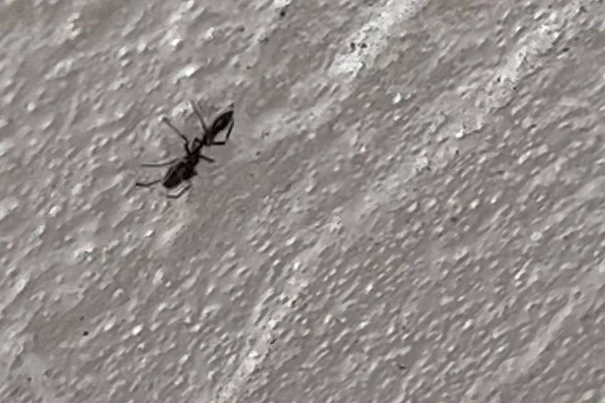 通常の3倍のアリですから、見るとはなしでも目立ちます。しかも赤。こんなありおるんか、、と、見ていると、糸をだしました。えええ??アリって糸出すっけ??っと思うくらいアリ。小学生の時に理科で習ったことを思い出します。昆虫は3分割で足が6本。クモは2分割で足が8本。どう見ても肉眼ではアリです。足の数は小さくてよくみえません。しかしどう見ても3分割。これは糸をだす特殊なアリかと思いググりました。するとクモでした。3分割にみえてただのくぼみで2分割。赤いやつはすでにどこかへいってしまいましたが、黒いやつの撮影に成功しました。足、8本あるーー笑。やはりクモです。いやはや、しらんことってまだまだありますねー笑