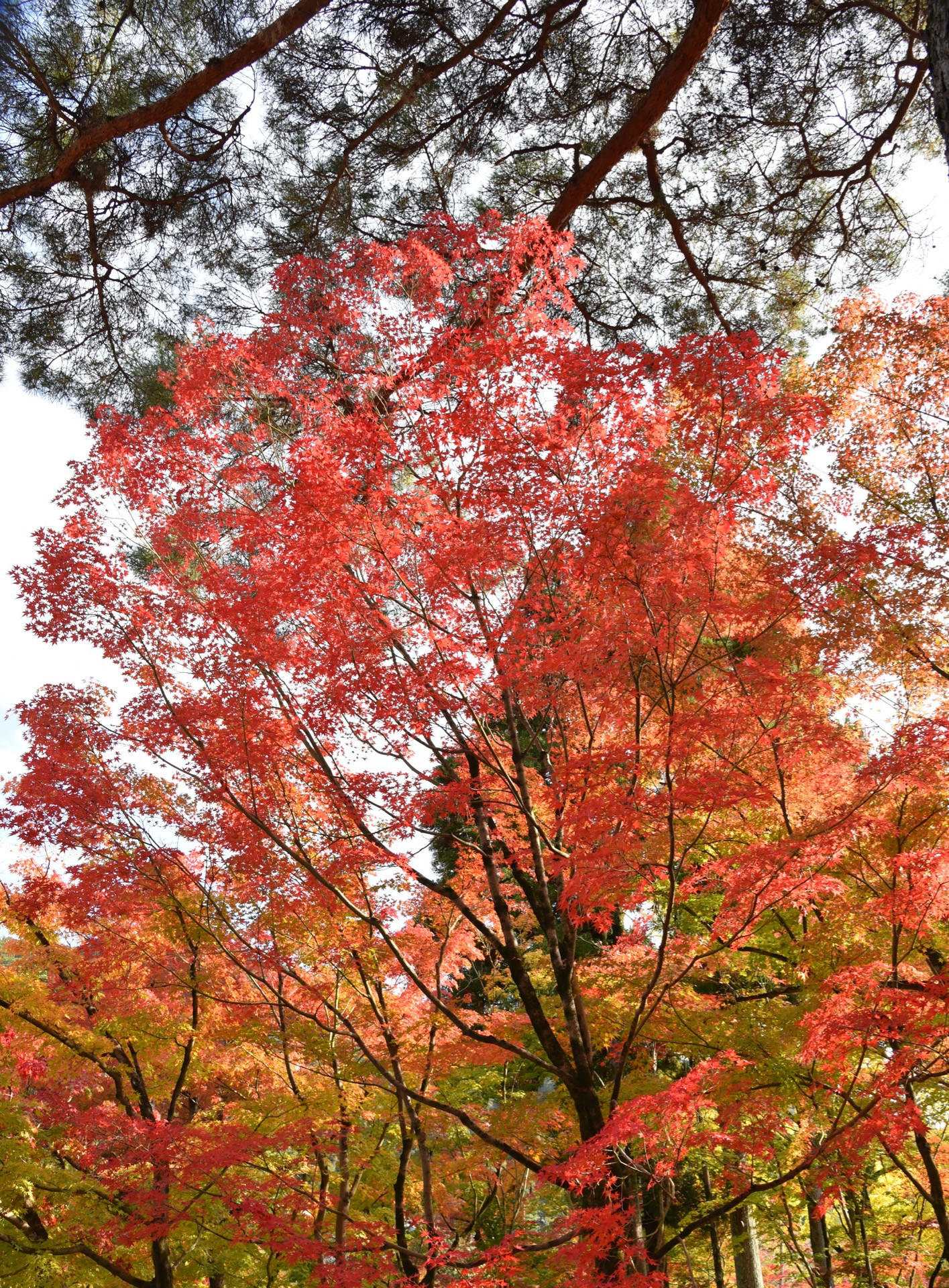 でも、私はやっぱりバックは青空がすきですね。スポットの紅葉もいいですが、ふらふら歩いていると良い枝ぶりの様々な紅葉があります。いっぱい写真をとるのですが、もうどこでとったものがわかりません(笑)でも、そんな写真のほうがよかったりしますね。おきにいりの紅葉を一枚、アップしたかったので。。