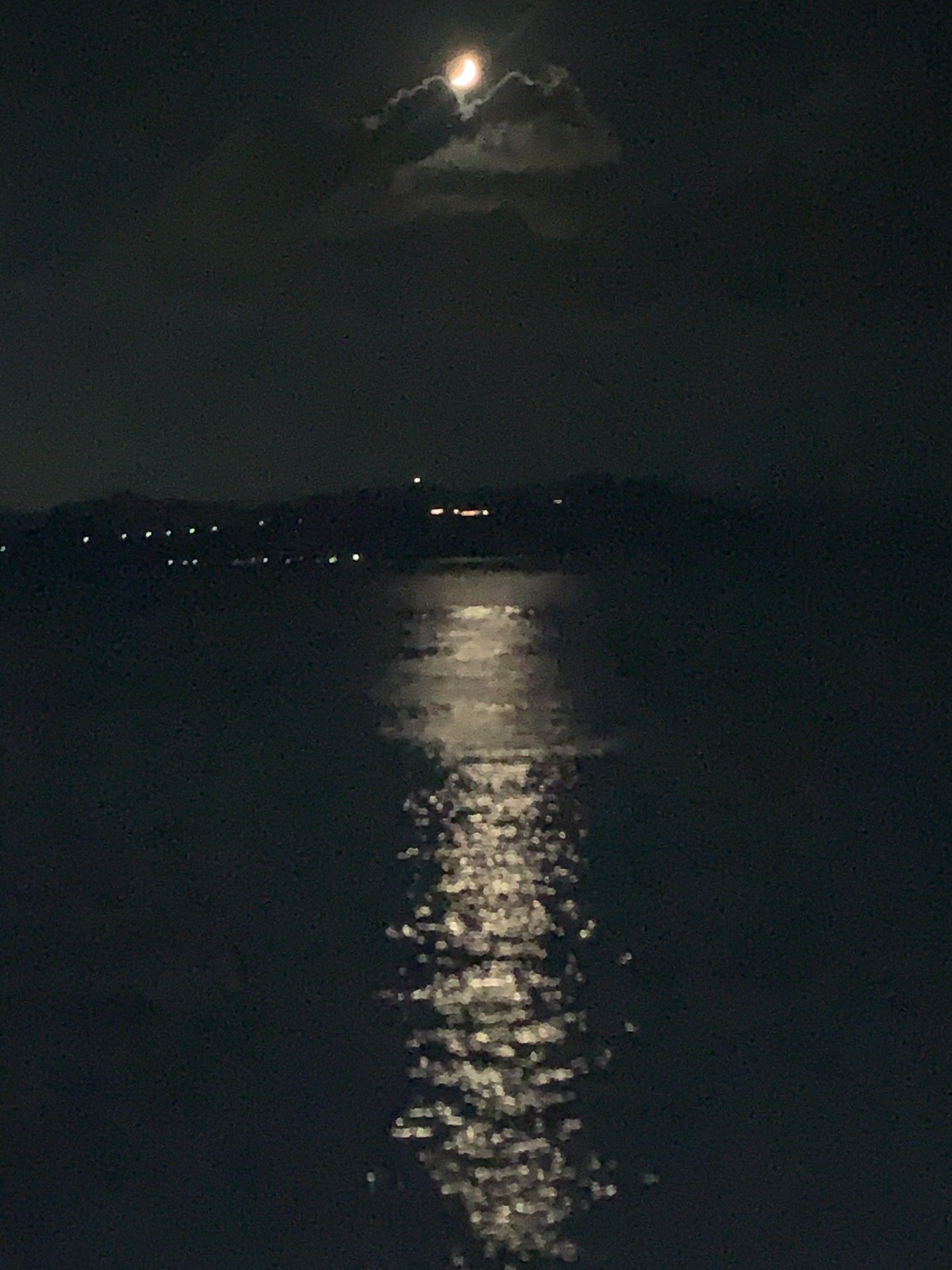 今回は淡路島最南端。三日月にも満たない細いつきでも、街明かりから遠ざかると、星もよく見え、これだけの銀波です。