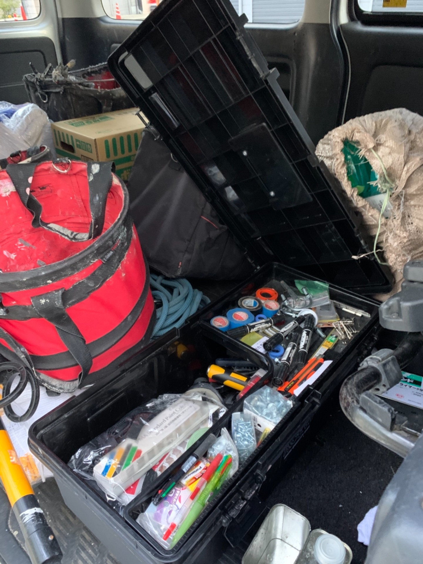 よく、『見せるための整理』を時間をかけてする人がいます。大切なことだしその人の価値観ですから、自分の時間を使って綺麗に整頓することを否定しているわけではありませんし、整理された空間が好きで落ち着くなら当然そうするべきです。机が汚かったと前述しておきながら、私もその方が(整理された空間)好きというと信憑性がありませんが、機能美的な空間には憧れがあります。でも私は職人に整理、整頓は求めますが、やり方ややり終わりに口は出しません。本人の使い勝手が一番です。職人は段取り8分。とてもよく考えて行動してます。たとえ乱雑に配列されているように見えてもほとんどの場合意味がありますので、私は職人に整理整頓しなさいよ、とは言いますが、あーしろこーしろは言いません。写真がないと寂しいブログですので、私の工具箱の整理前整理後の写真です。何が変わったん??笑こんな感じで本人がこんな感じなのもありますが。。笑