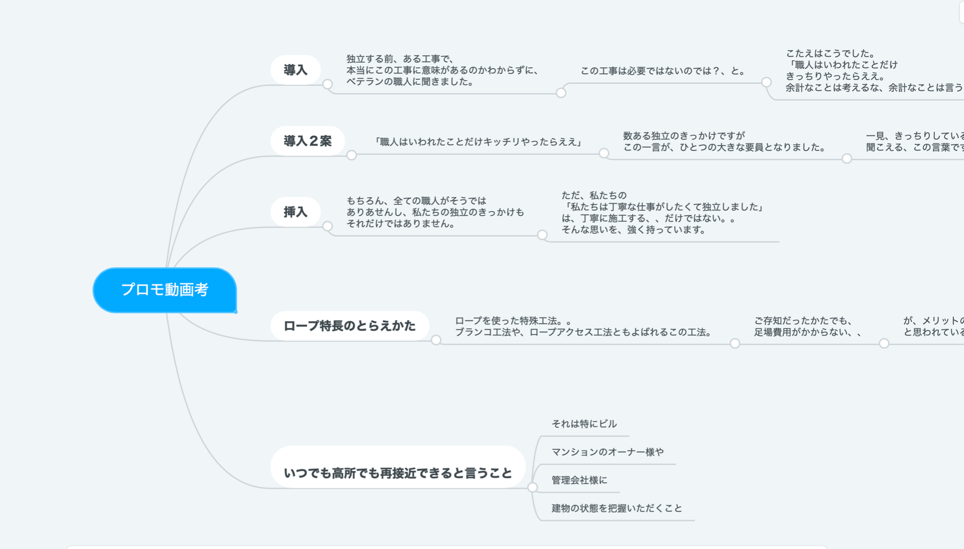 テーマを決めて箇条書きにして並べかえて整理したり、組織図的に、ピラミッド的に思考を整理したり、とても便利です。パワーポイント的にプレゼンなんかにも使えるかもしれません。私も使い出して間がないですが、利用していってホームページの文章をわかりやすく簡素化したりしたいと思います。