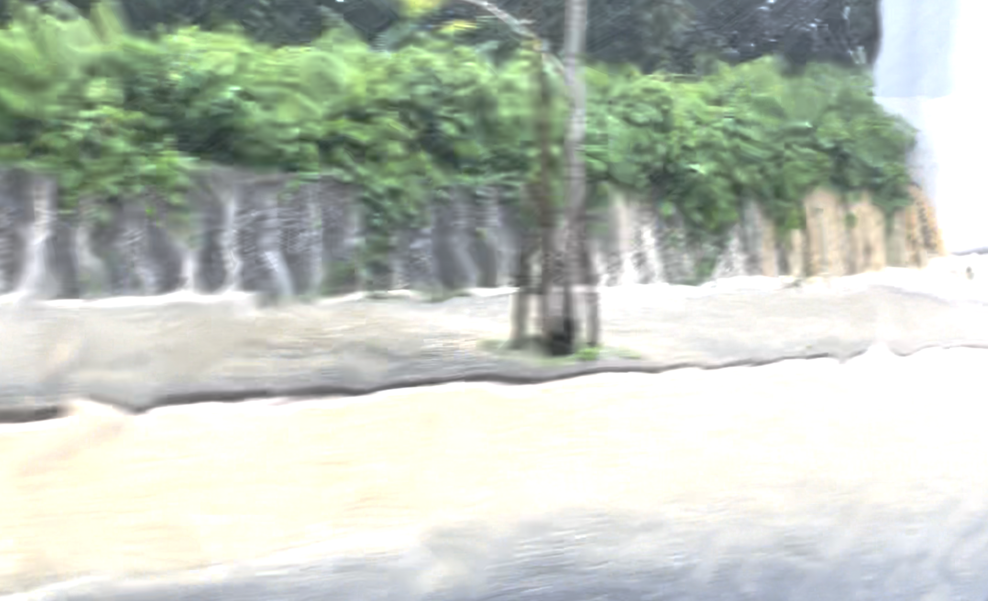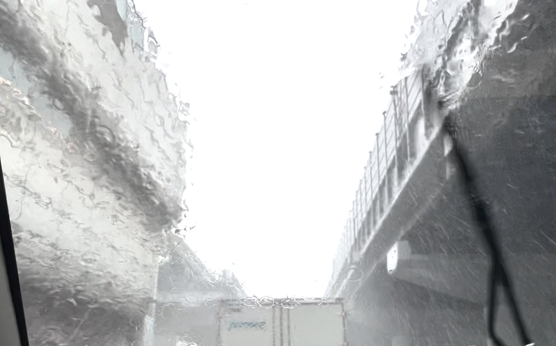 万博公園の付近にはいると、左車線は冠水してました。