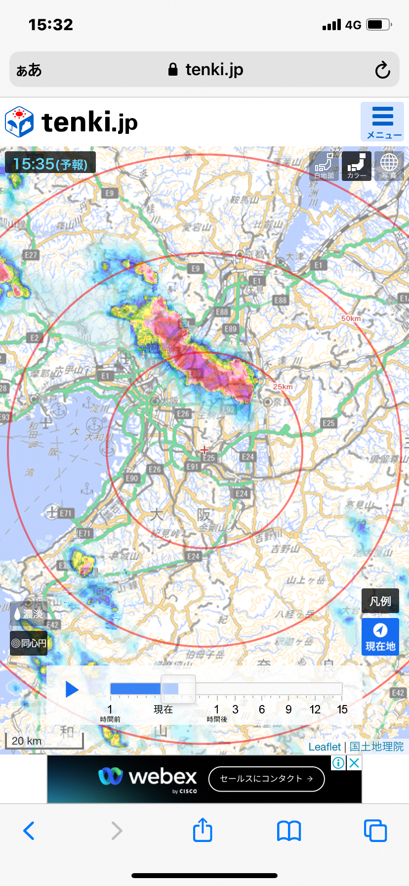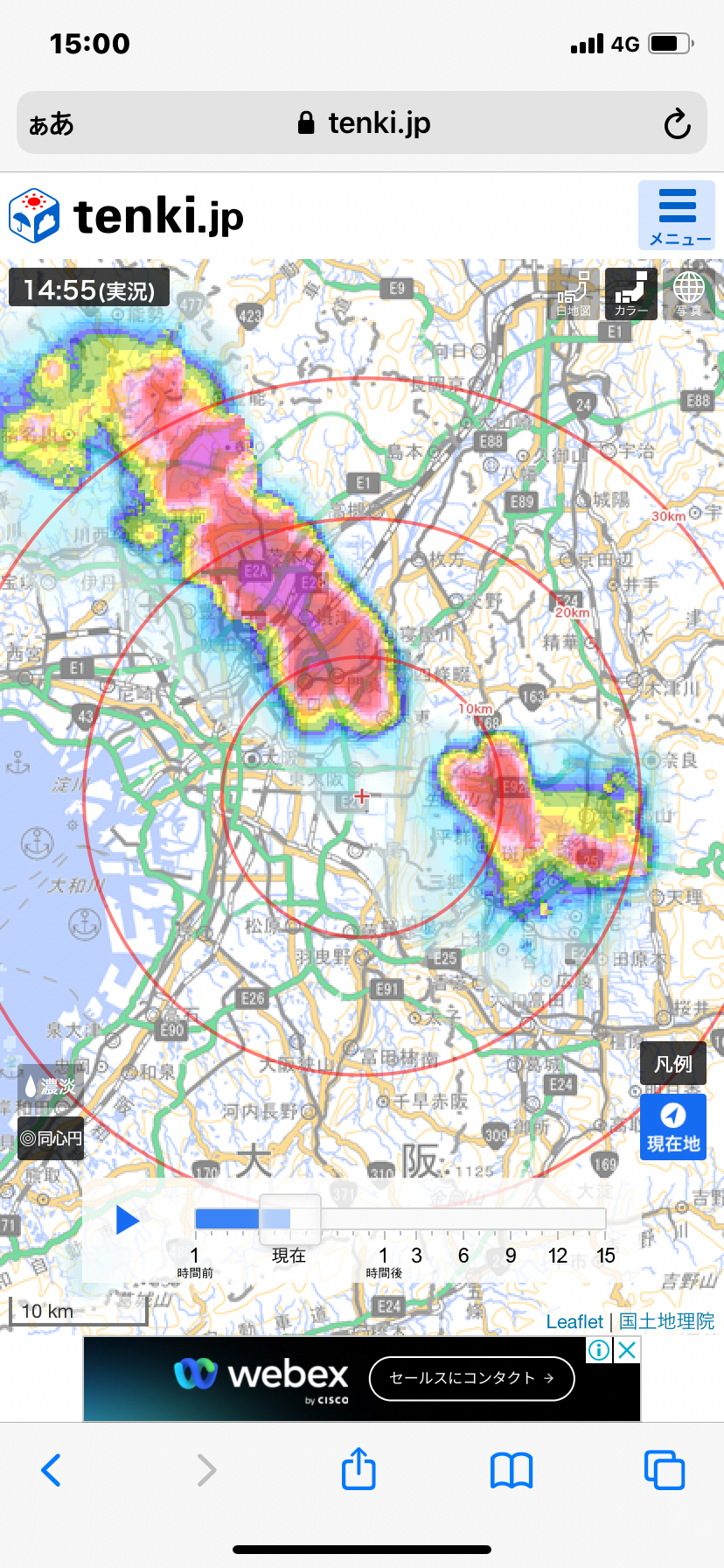 まずは洗濯物がきになって、雨雲レーダ。今は大丈夫だけど、、やはりアウト。あーあ。