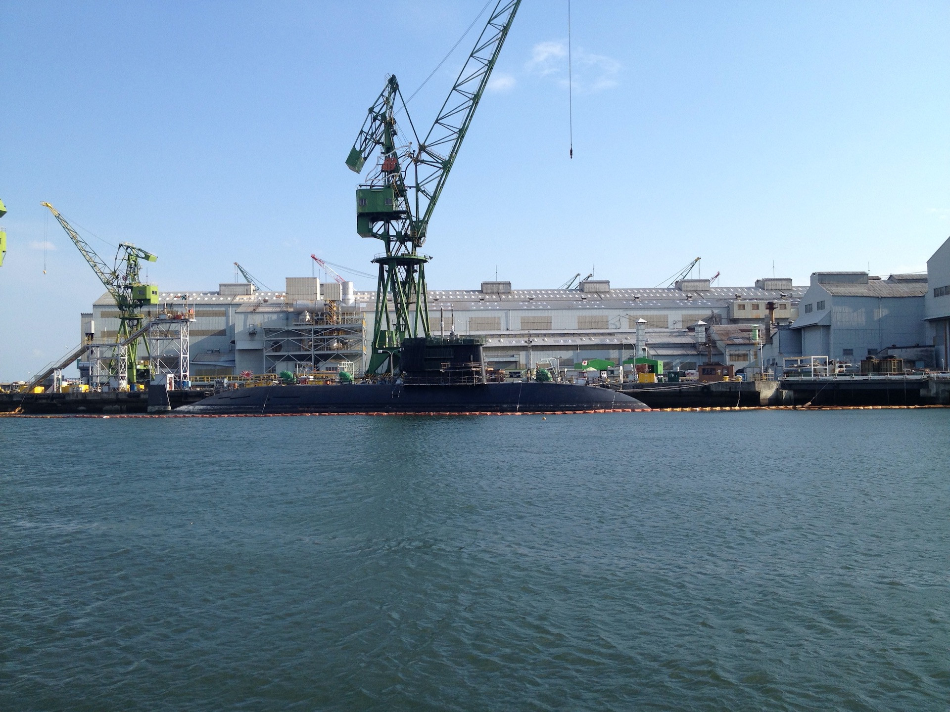 ハーバーランドをはじめ、神戸の海からは、川重やMHI(合併などで今は呼び方変わってるかな、)のクレーンが見え、時には潜水艦をみたりすることができます。兵庫突堤と呼ばれる釣りのポイントなどでも、目の前で潜水艦を整備している。その横で釣りをしてる光景ってあまり他ではないのではないでしょうか?