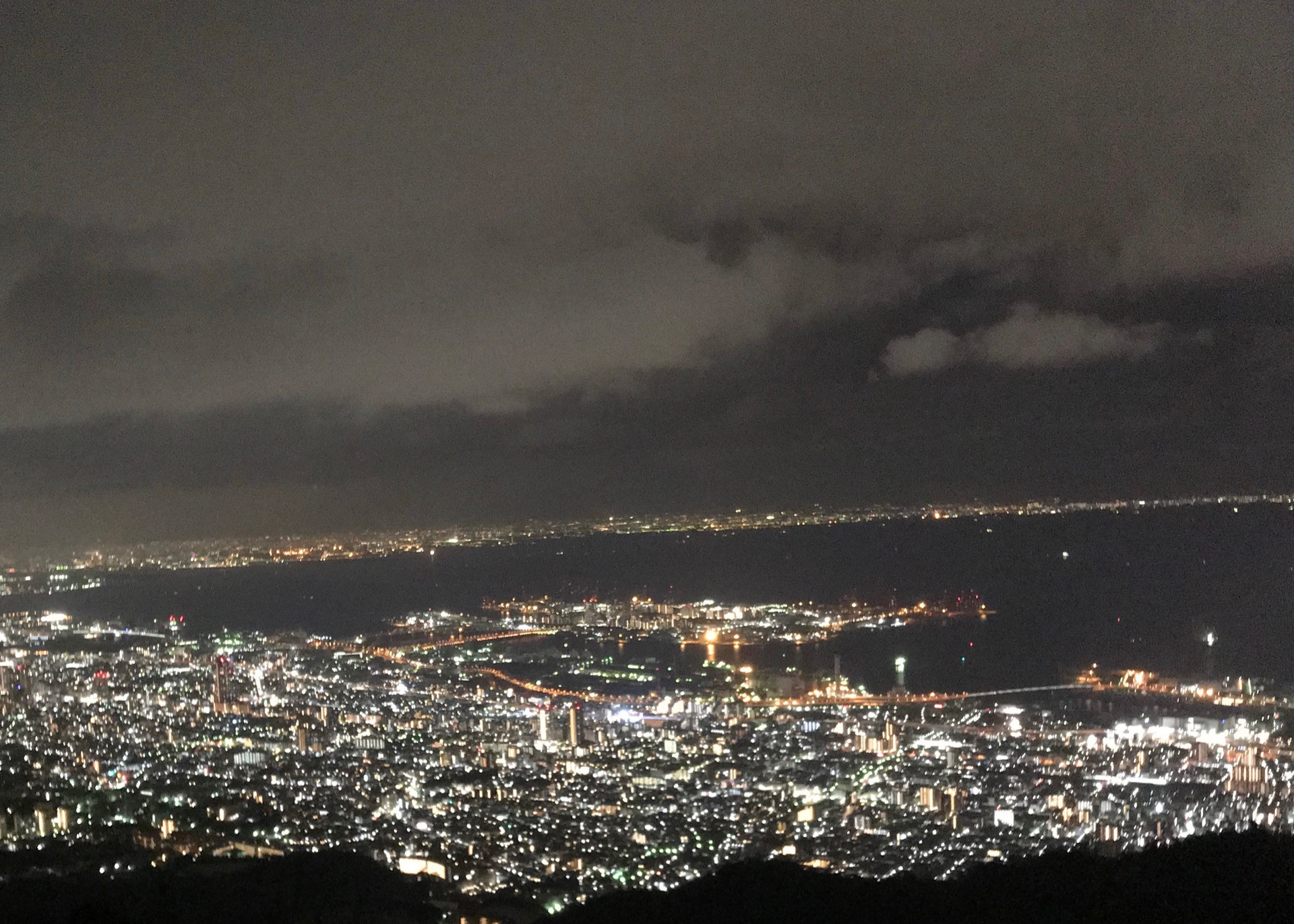 山の高さには及びません。大阪、神戸には生駒と六甲という山からの夜景スポットが有名ですね。高さがあっても街の明かりがないと、夜景もはえません。大阪、神戸の街の明かりを山から観れるのでとても綺麗ですね。これから冬になれば空気が澄んで、さらに綺麗になりますね。