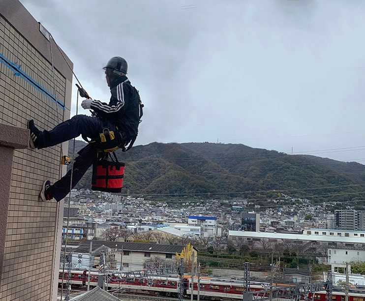 ビルの屋上が仕事の拠点、ビルの壁面が仕事場ですから、いつもいい景色の中仕事をさせていただいているので、こういう瞬間もできてしまいますね。