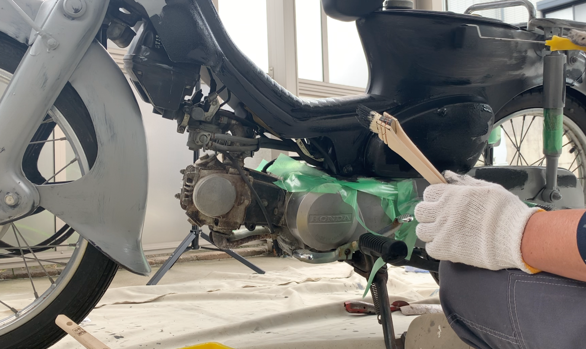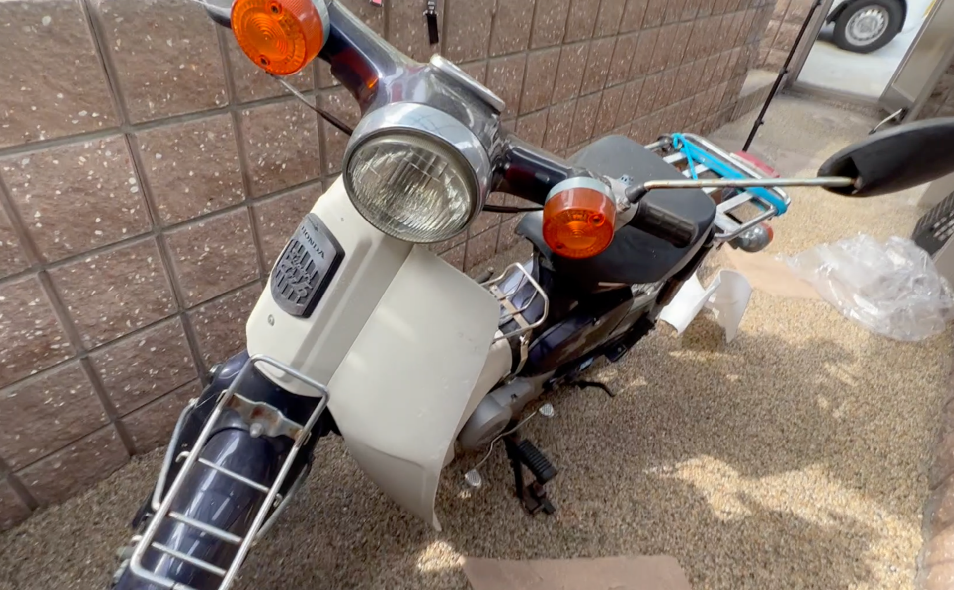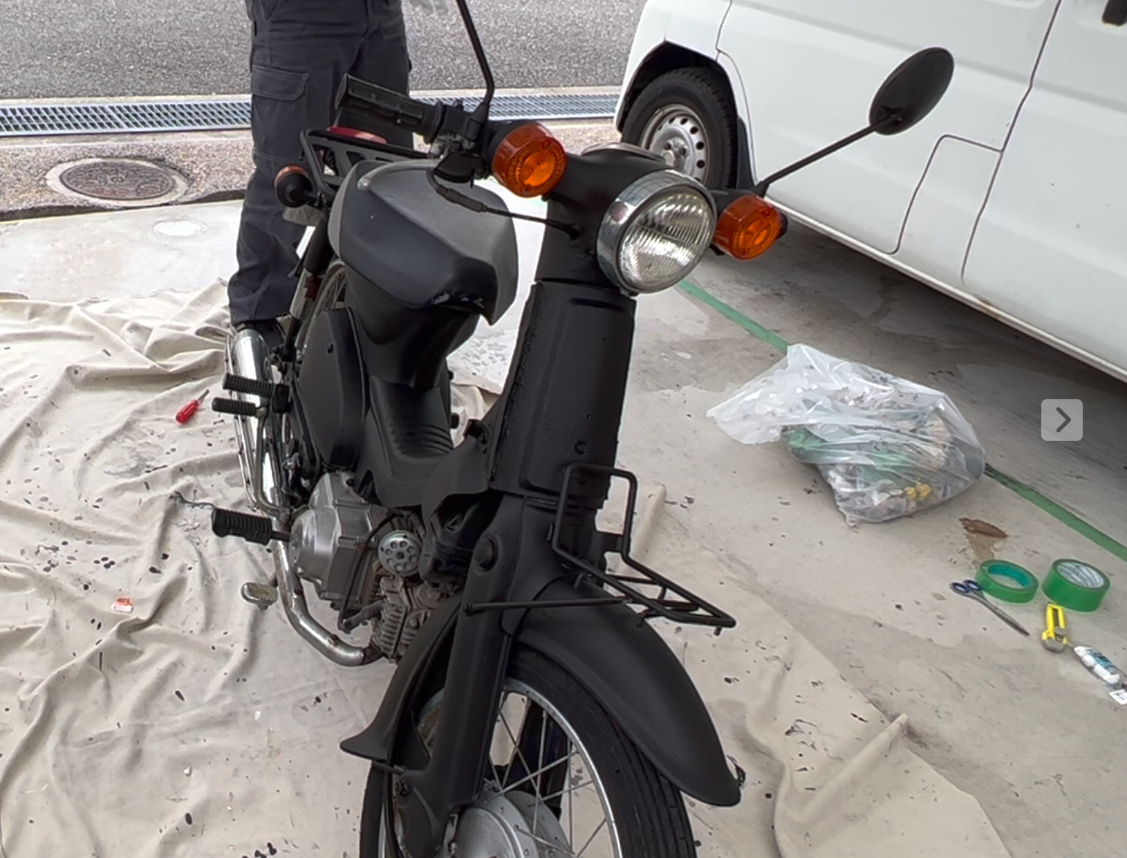 カブ90cc とりま、完成ー \(^o^)/ 2022/05/21 とりまのbefore/after カウル、、というかレッグカバーというようですが、とにかく、カブの白いところが折角かわいいのにおっさん用くさくしてる要因と思い付け替えました。前々から、錆を落としてやりたかったのでもうこりゃ塗ったほうが早い、というのと、もう売ることもないなってことで塗っちゃいました。最小限のDIYですむように養生と取り外しなどの手間を省略するため刷毛とローラーで塗りました。配線を養生しなくていいように艶消し黒にしました。横着な全塗装のわりには、、だと思います。気がついた部分はタッチアップすりゃーいいし、楽ー笑 まぁー、とにかく街乗りには最適です。やっぱり国産はいいですね。故障しないし、燃費も都市伝説ほどではありませんがいいですし。とにかくカブとわりきってしまえば、これ以上の街乗りバイクはないですね笑。なんでもカブだかですんじゃいます笑。 始動はキックで、しばらく乗ってなかったりするとかかりにくいのですが、幸いなことにうちの前は坂。セルフ押しがけができるので問題なし笑。いろいろくせやこつがありますが、それがまたかわいい笑 ◉◉◉ 個人ブログ ◉◉◉== 観光・行楽 日常 好きなことetc ==