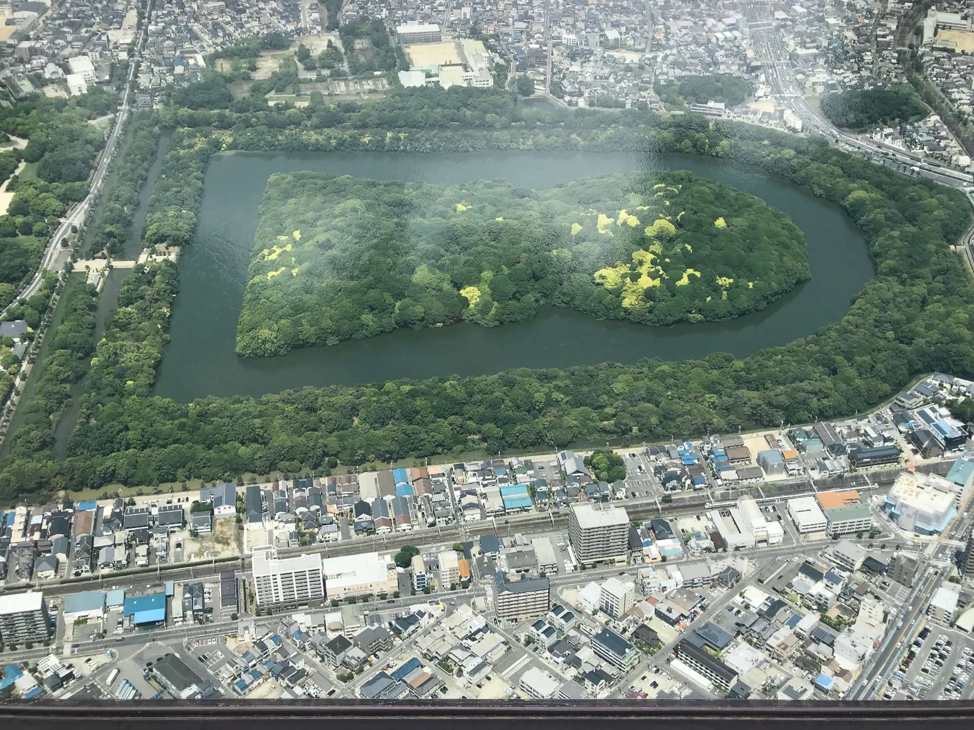 大仙稜古墳(仁徳天皇陵)2 一周す 大阪 堺市 2021/09/04 大阪堺大仙稜古墳(仁徳天皇陵)については前に少し書きました。セルフバルコニーで6階上からチラッと見えていたものを書きましたが、今回隙間時間に一周走ってみました。標識があるのでどのあたりか分かりますが、なければ全くどこなのだろうといった感じで同じ景色がつづきます。一周2850mのようですね。前方後円墳なので前が四角ですね。正面、と呼ばれるところの写真です。 所々に正面目での距離表示。一周2850mのようです お堀が延々つづきます 道はこんな感じ。走りやすくはある 空撮でしか写真はとれませんね笑 ◉◉◉ 個人ブログ ◉◉◉== 観光・行楽 日常 好きなことetc ==