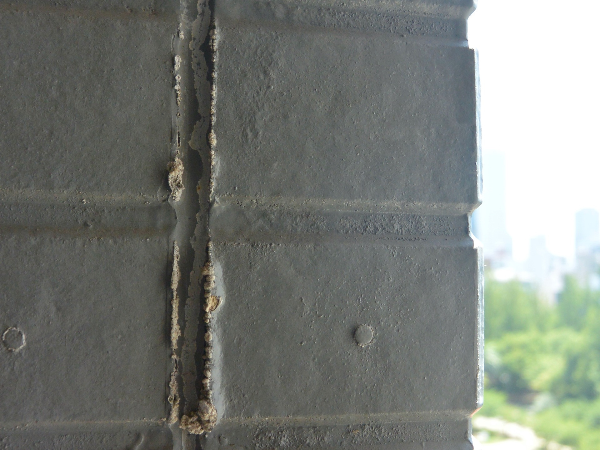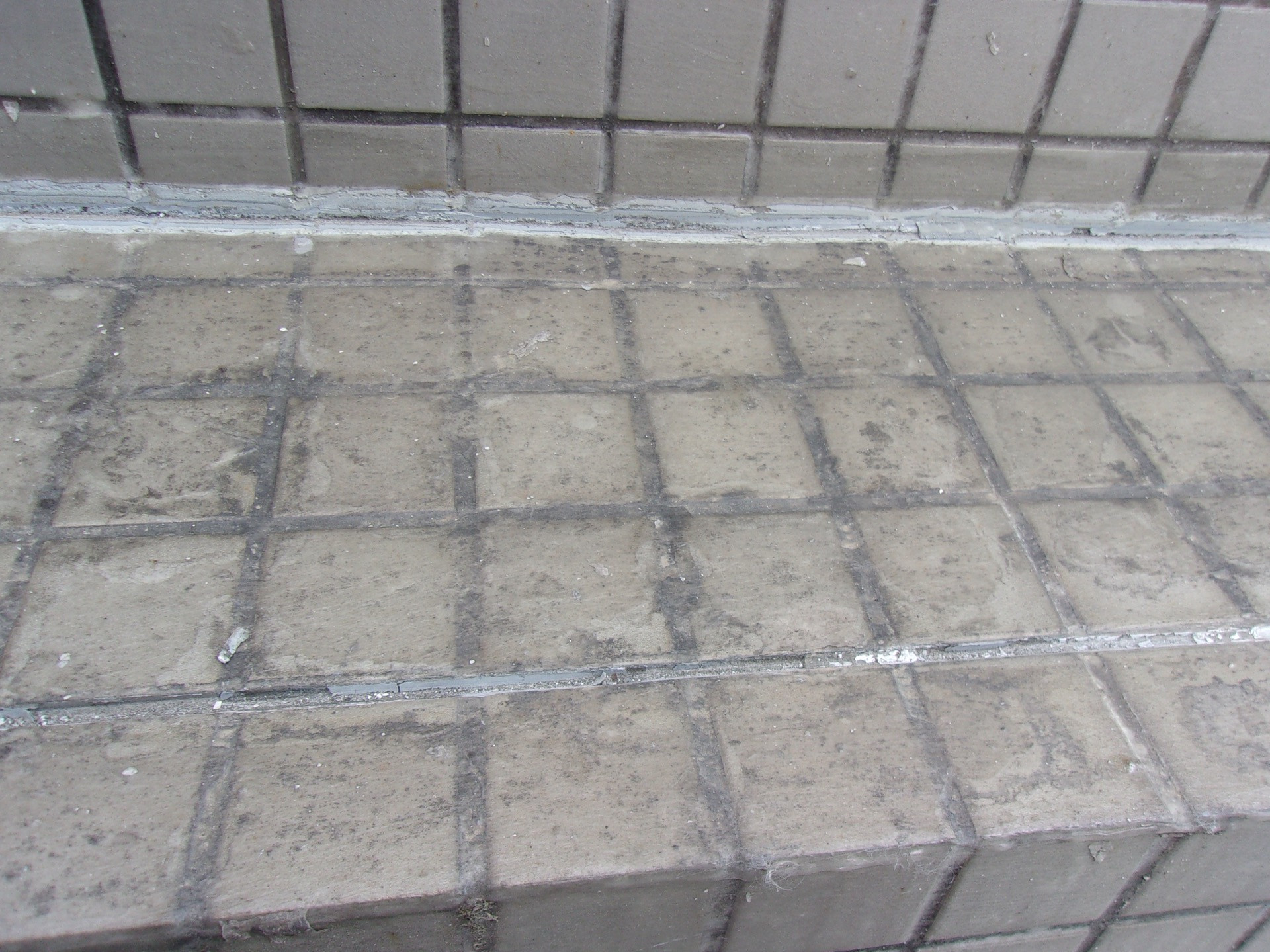 そう、タイル面はタイルとタイル目地で構成されます。タイルは磁器質、目地はモルタルと素材が違うものに、同一の塗料を使います。塗装が困難になります。そして、例え上手く塗れたとしても劣化の進行が素材が違うため違ってきます。さらに建物は動いています。塗膜の劣化の進行が違う上に動きが加わり、磁器質の塗装のためおそらく溶剤が使われるので、さらに剥がれやすく、経年とともに汚くなりやすいのが、タイルの塗装です。クリアの防水塗装もよほど塗料を厳選する必要があります。弊社では、機能的に必要な場合(雨漏りなど)は浸透性撥水材をお勧めしております。