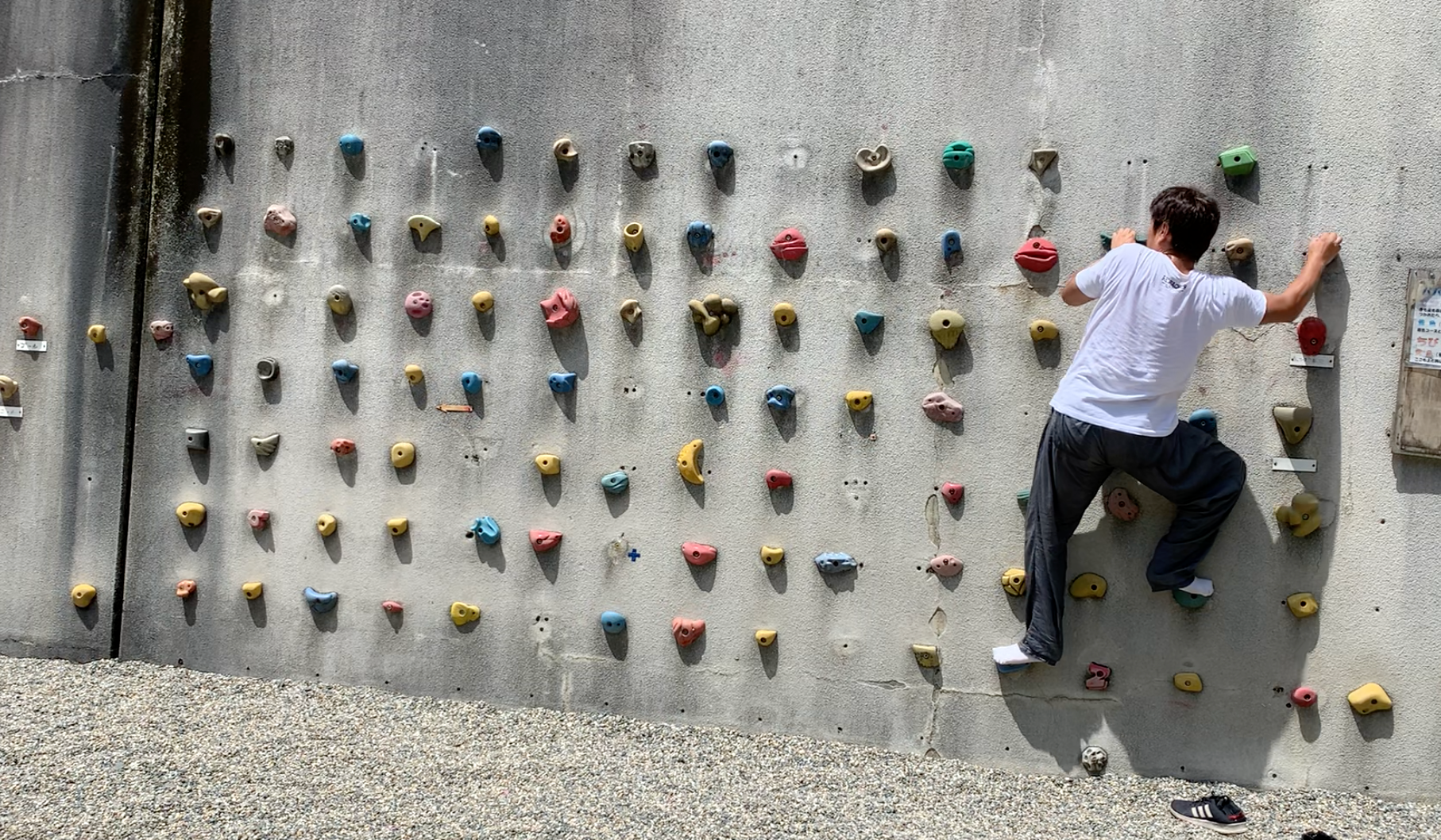 途中にボルダリング壁がありました。横に体験用もあったのでちょっとやってみました。初心者用、中級はクリアできました。上級は難しかった。笑