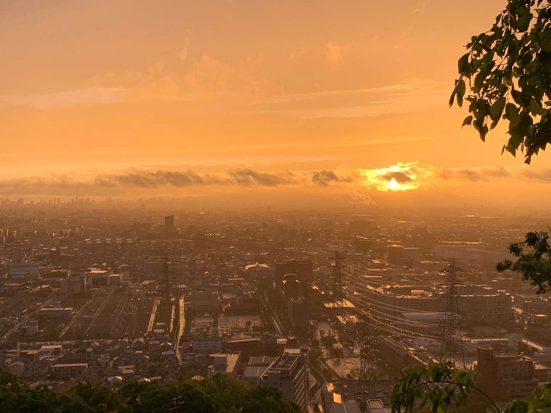 雨上がり(厳密にはまだちょっと降っていましたが)の大阪に夕陽がさした瞬間に阪奈道路を通りました。何度となく見ている夕焼け時間の阪奈からの大阪ですが、夜景も含めて私が見たなかで一番きれいだったと思います。みたままが写真にとれるなら、拡大して部屋に飾っておきたいような、、とっても綺麗な夕陽でした。雨上がりのキラキラ感が最高でした。
