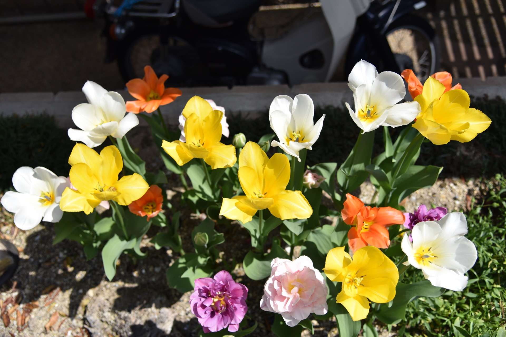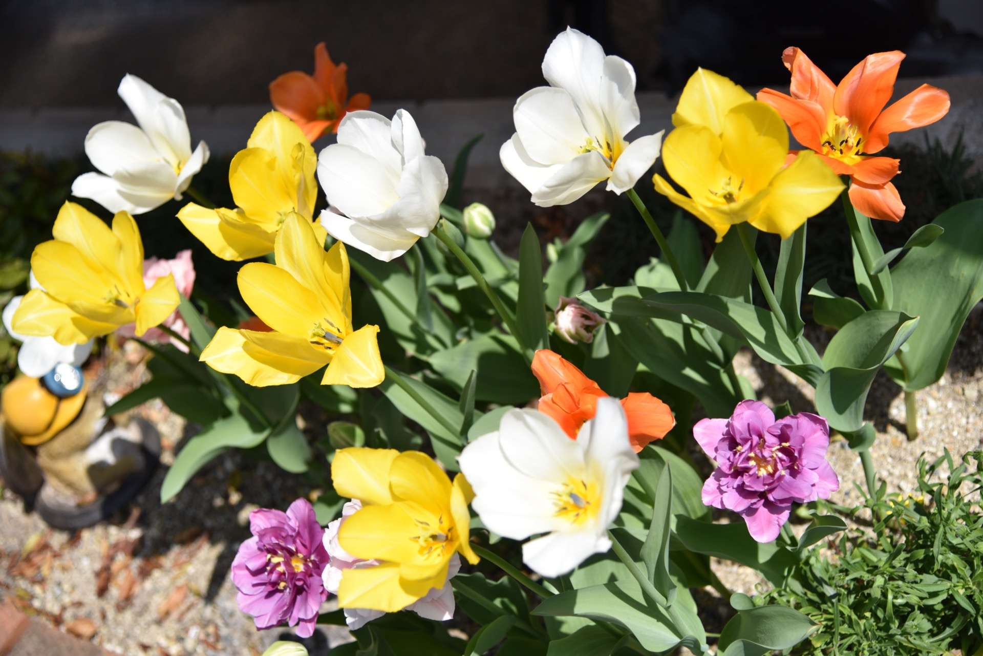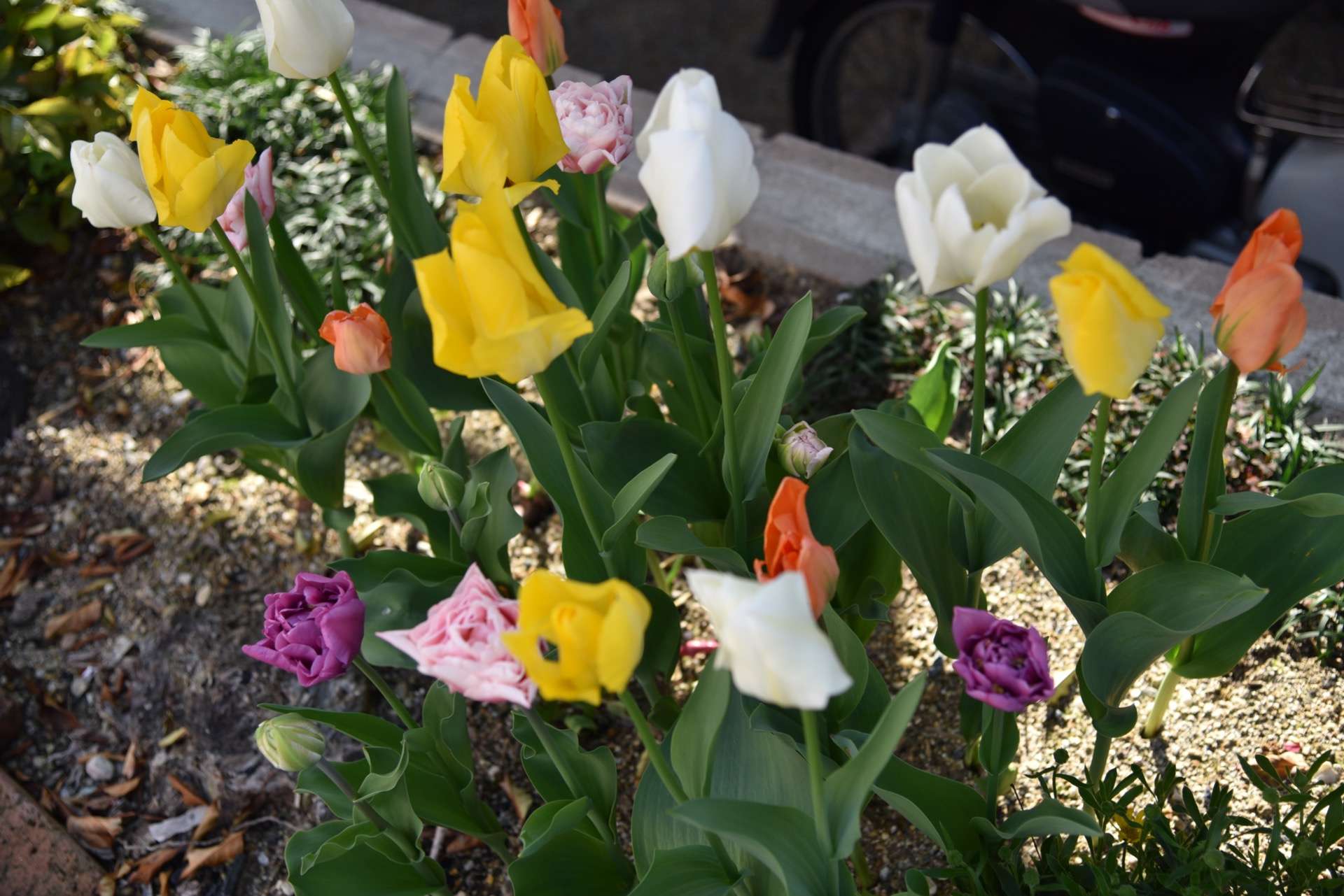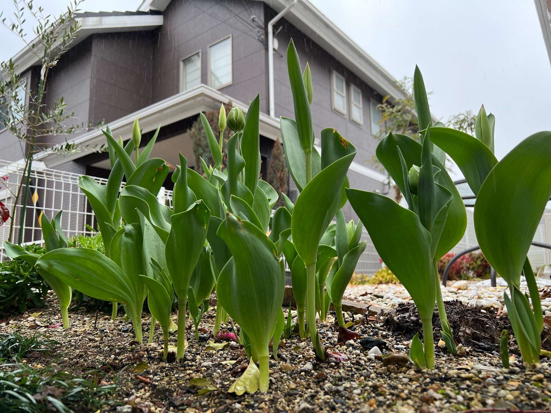 ブログで調べると去年の10月18日に植えたようです。チューリップ。半年越しです。昨日の雨で大半が散ってしまいました。色は別にして2種類植えたので、タイムラグができてしまい、全部が咲き誇っているタイミングはありませんでした。