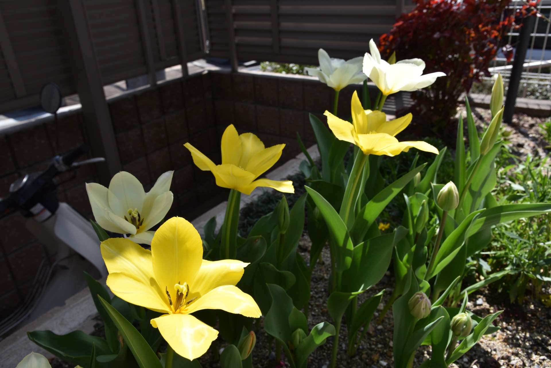 黄色と、白が蕾だし、咲いていきました。今思えば、この状態が一番私の想像していたチューリップでした笑。