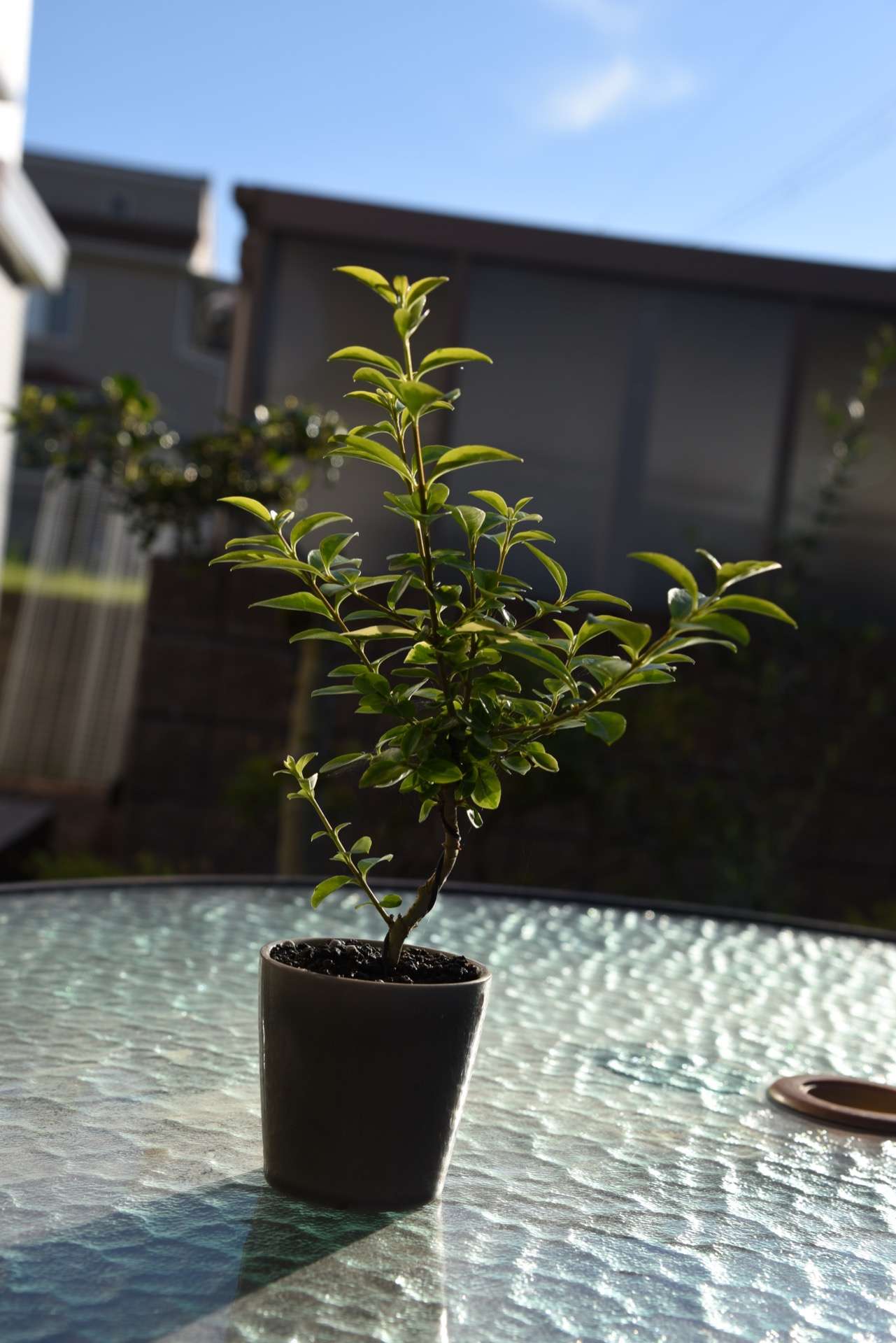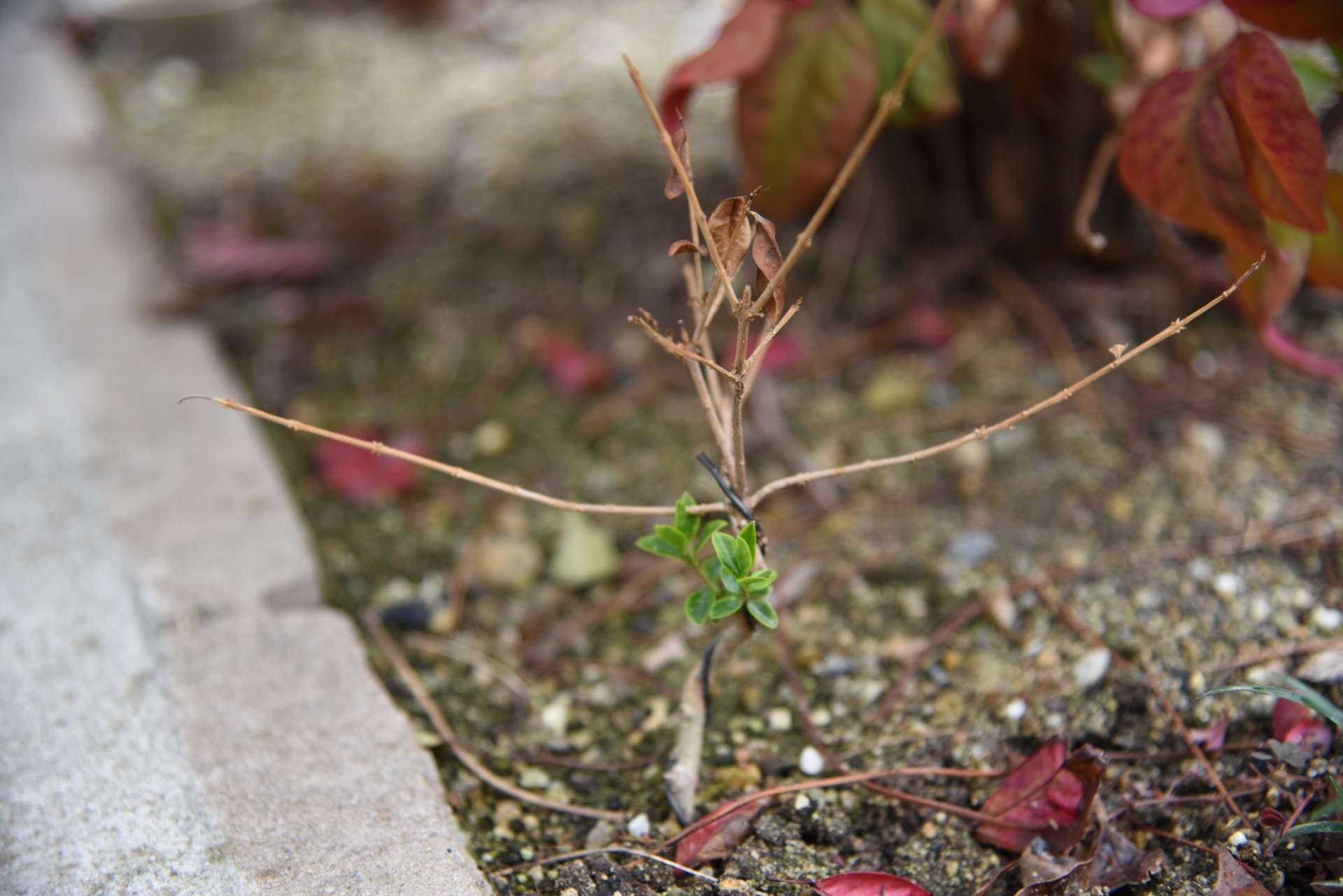 これも以前ブログで書いたのですが、手元緩衝用にちっちゃい手のひらサイズの盆栽といいますか、これが両手をあげてかわいかったんで思わず買ったのですが、実は、、すぐに枯れちゃいました。水、ちゃんとやってたんですけど。ただ、だめもとで庭に植え直してみました。すぐ朽ちて土に還るかと思いきや、復活の兆し。ちょっと、たのしみ笑
