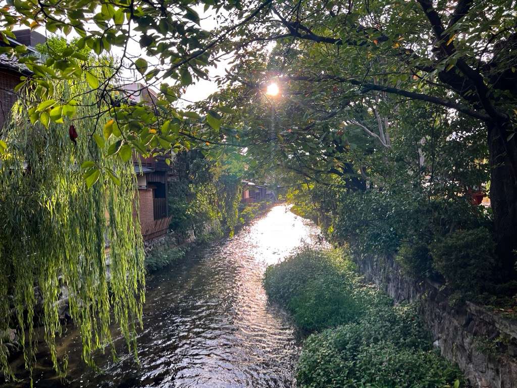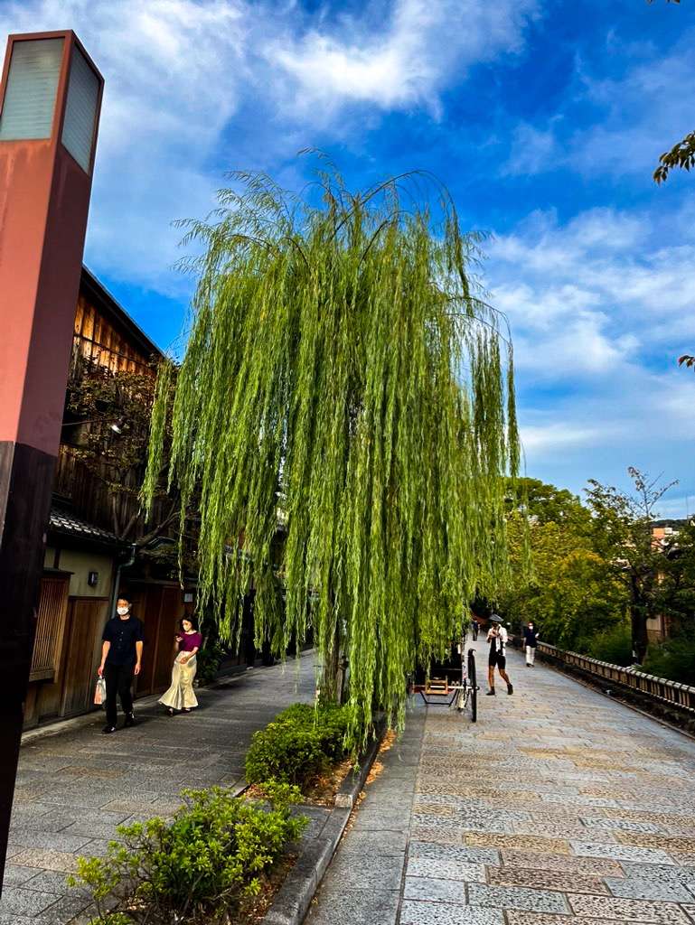 京都の四条、三条間の祇園白川あたり。私も時間を見つけてはよく散歩したりブログにもあげていますが、平日だとやはり人も少なく、本来の(?)厳かな雰囲気を味わえました。柳が特徴的な街ブラ。