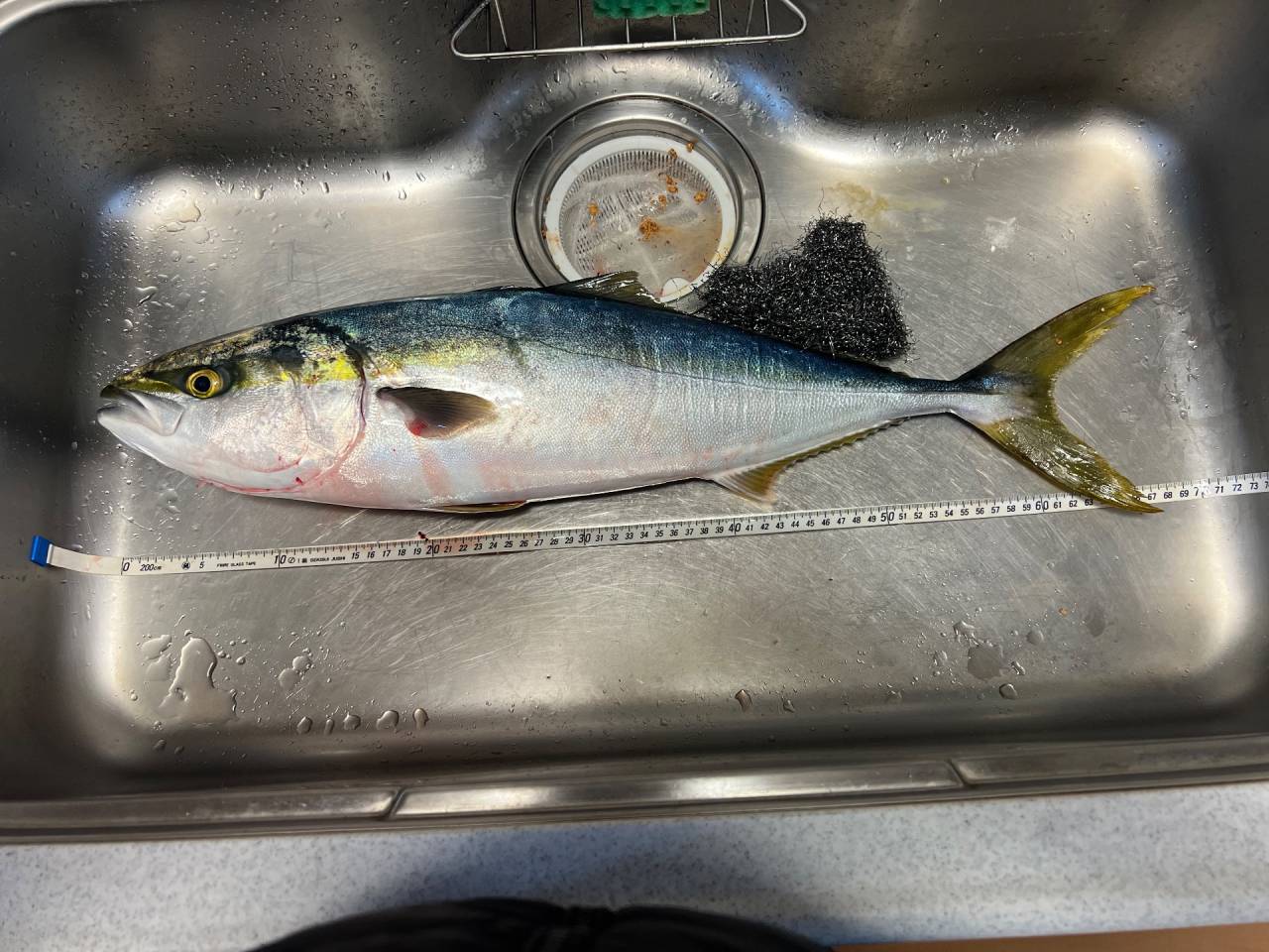 関西では大きさによってハマチ→メジロ→ブリ、なので、関西で釣れた今回の70弱はメジロ