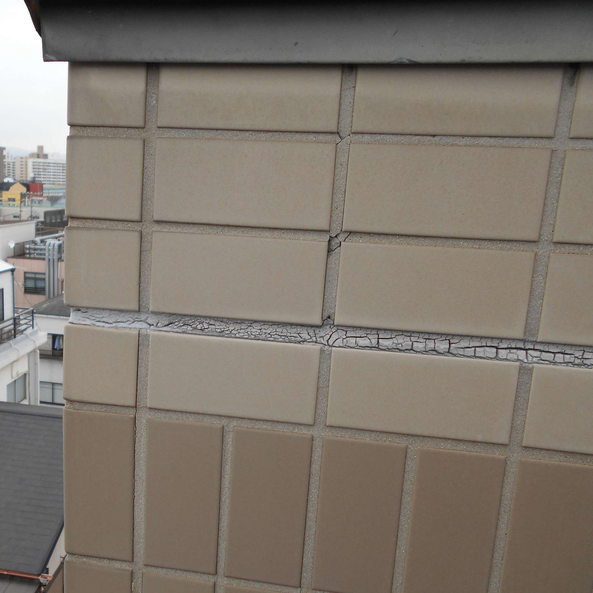 築年数が経っている建物や、長らく修繕は補修をしていない建物はロープ一本降りるだけで、様々な事象が見られる場合もあります。なにもでてこなければ、大規模修繕はすこし先送りにできそうとか、早めにしたほうがいいとか、この部分だけは応急処置をしたほうがいいとか、状況判断の材料になる場合があります。大規模修繕と一口にいっても、各社の提案内容は多様になる場合がありますので、状況を把握していれば、メニューを考える時、要不要が分かりやすくなります。雨漏りやタイルの不具合は、症状としてでていなくても確実に浸水していたり、剥落の危険性があったりする場合もあります。現状症状がなくても、「大規模修繕の時期を考えたい」「劣化の状況、建物の特徴をしっておきたい」などのご依頼でも、一度問い合わせてみてください。