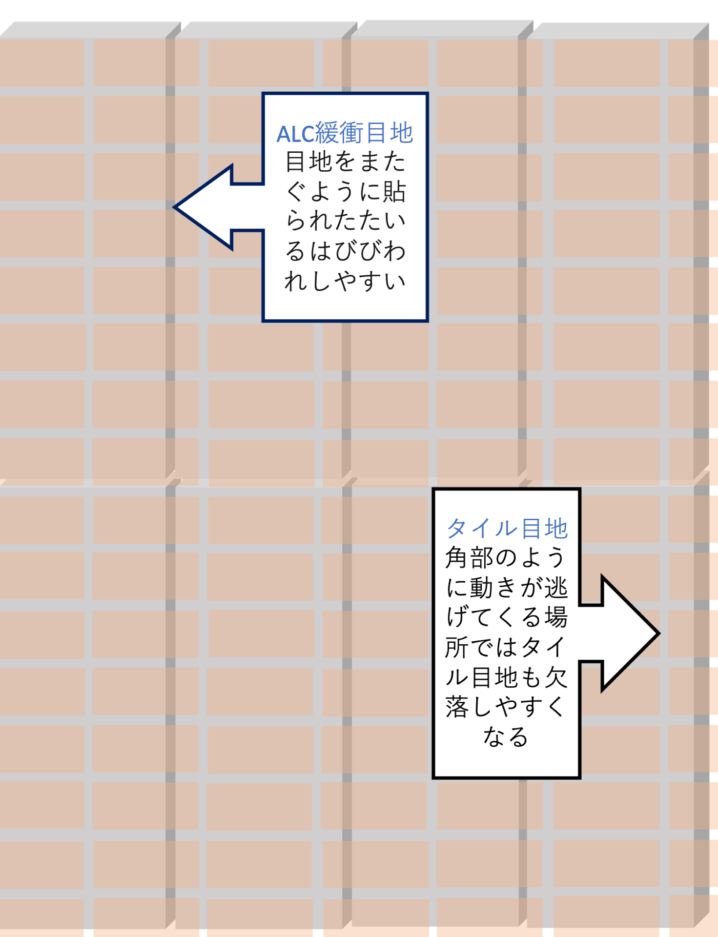 ディフォルメですが図を見ると揺れなどの動きでタイルに負荷がかかるのがわかると思います。