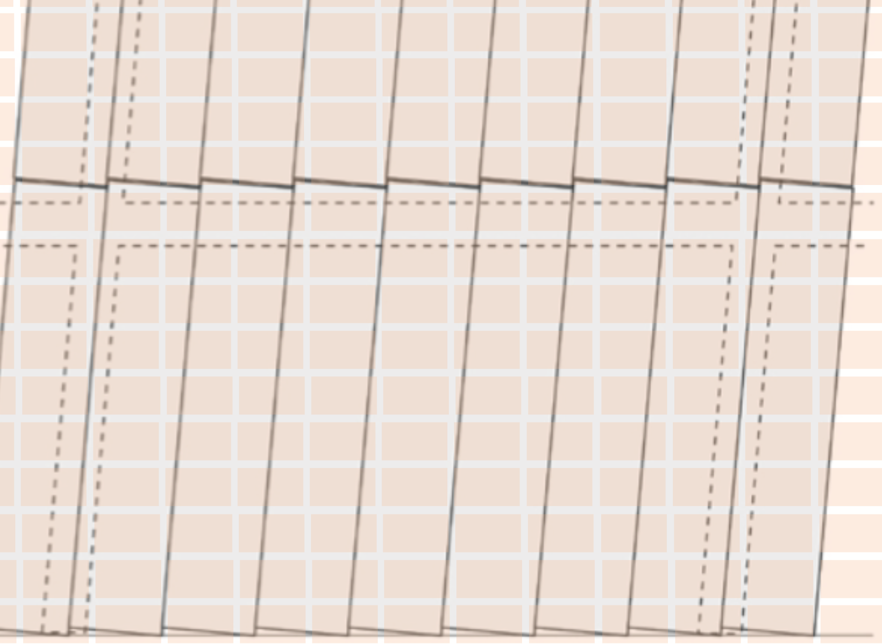 ALCはとても水に弱い材質です。その上に防水機能にすぐれるタイルを貼るのは一見有効に見えます。しかし下地としてのALCパネルとタイル貼りの外壁は、数点の観点から欠点がある組み合わせになります。今回の記事は建物の動きに対しての記事にしたいので、まずはその観点からの欠点です。上記のようにS造(鉄骨造)、ロッキング工法のALCパネル外壁は動きを受け流す特性の構造ですが、上にタイルを貼ると逆にその動きを固めようとしてしまっていることになります。しかし、タイル貼りで固めても建物は動いています。なので、タイルも追従して動けば問題は軽減されますが、多くの場合は図のようにALC緩衝目地の上でも被せるようにタイル貼りされているのが現状で、特に建物の角部、開口部付近、2階〜3階付近など、建物の動きが逃げてくる場所の緩衝目地の上にまたぐように貼られているタイルは緩衝目地にそってクラックが入りやすくなるなど、劣化しやすいものとなってしまっています。また、タイルより弱いタイル目地も下地が動きやすいALCパネルなので欠落しやすくなります。