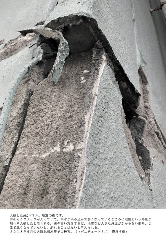 →下地素材により違いはありますが、例えば吸水性の高いALCでは、周辺環境にもよりますが、苔やカビよりも、ALCが脆くなることの方が大きな問題になります。苔やカビが生えるほど、水を吸っている状態なら、脆くなっている可能性があります。もちろん美観にも関わりますが、吸水性の低い素材、吸水性を見越した雨仕舞いをしている外壁に関しては壁が崩れるようなことにはなかなかなりません。