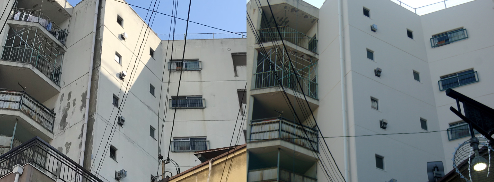 RC造の表面仕上げは、たとえばタイル貼り、のように種類があり、それによっても劣化の仕方、対処法はかわってきますので、ここではRCの劣化について、すなわち中性化について書きます。イメージとして打放しの鉄筋コンクリートの建物がわかりやすいと思います。塗装やタイル、打ち継ぎや緩衝目地など、雨漏りなどの原因となると様々なことが組み合わさります。今回は中性化に特化した記事です。