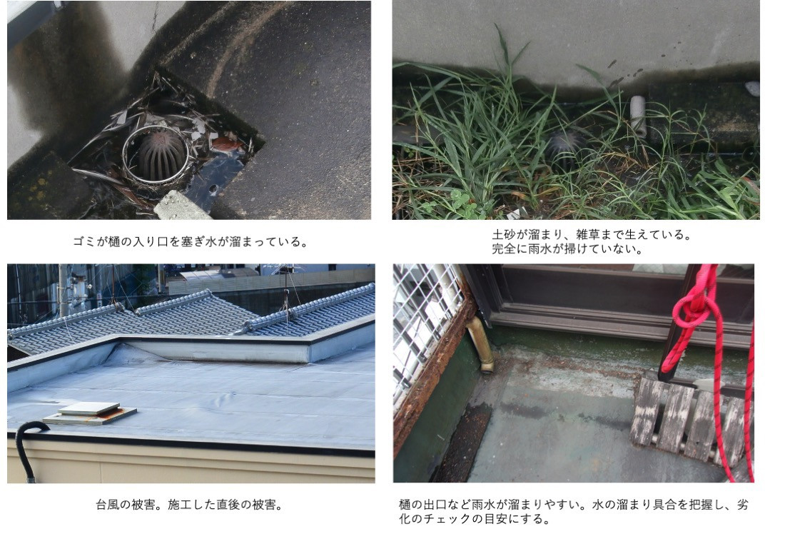 定期的にチェック 雨の後の水たまりや台風の後などの被害チェックなど