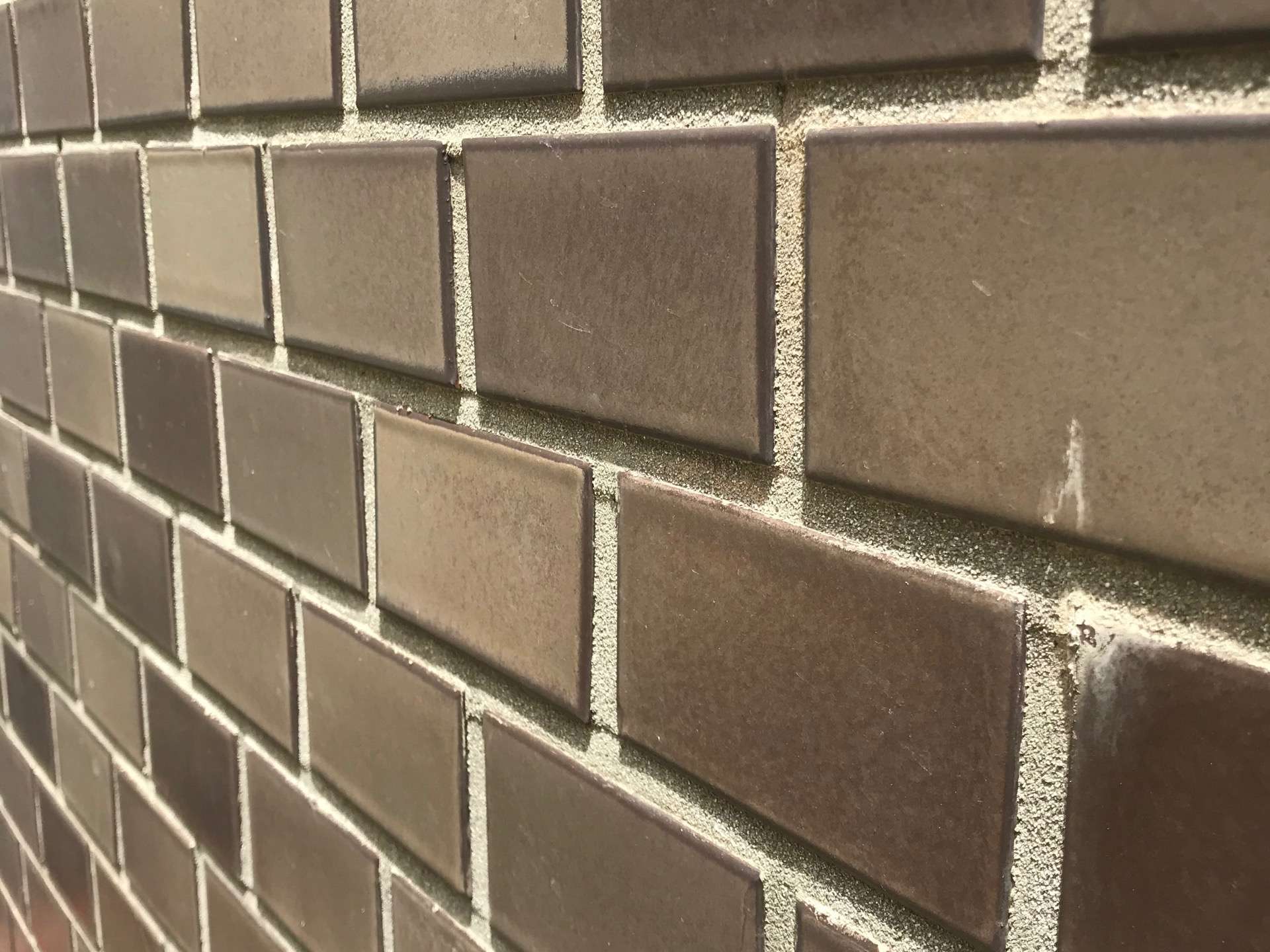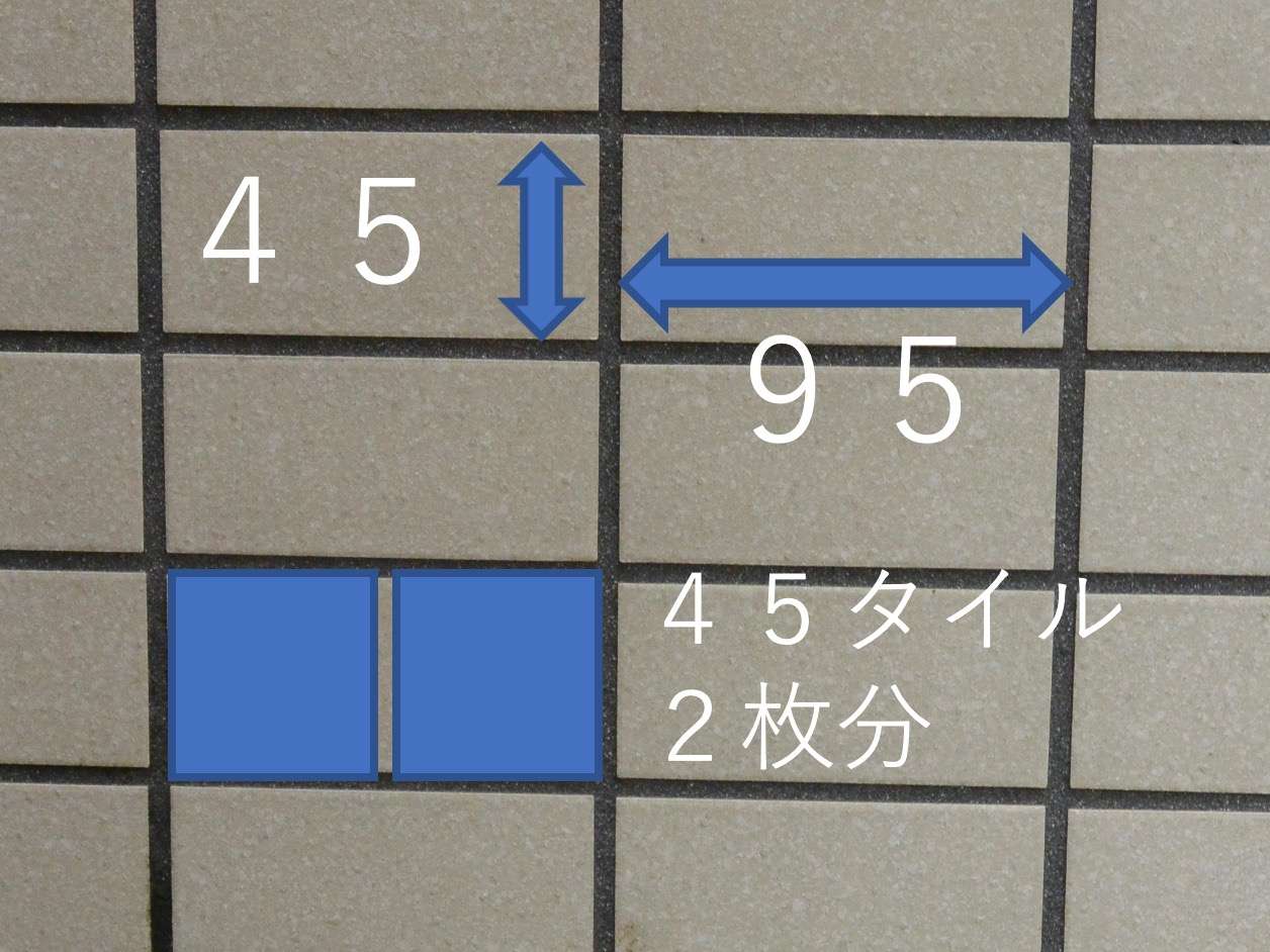 タイル豆知識あれこれ 2021/01/19 タイルの元々。。 ヨーロッパ風レンガ造から 明治以降、倉庫、工場、公共建物などで洋風の建物、、つまりレンガ積みの建物がある種の象徴のように作られたようですが、地震の多い日本ではやはりレンガ積みでは耐震性が持たず、外観はレンガのように洋風なタイルがRC造の仕上材として使われるようになったようです。 小口タイルとは? レンガ由来 タイルはレンガ積みが元になっているのでネーミングもレンガ由来のものが多く、レンガの小口(切断面)の大きさに合わせてつくられたタイルを小口タイルと呼びます。 108㎜x60㎜のものをいいます。 横に2つ並べた横長の大きさのものを2丁掛けと呼びます。108x2=216に目地分をいれて227としています。つまり、 227㎜x60㎜が2丁掛けです。 レンガは豆腐のような形だから豆腐と同じように「丁」と数えるようでレンガ2丁分で2丁掛けとなったようです。 452丁掛けタイルとは 多く使われるサイズ。小口2丁掛けと間違わないように。。 45㎜角のタイルと目地の寸法を合わせた大きさのタイルを452丁(45ニ丁)掛けタイルといいます。 95㎜x45㎜です。 「2丁掛け」という場合、小口掛けとこの452丁では寸法が違いますので注意が必要です。 45㎜角のものは45角タイルという場合と目地を入れて50角タイルという場合があり同じものです。 カタログなどでタイルを見るときはどこからどこの寸法か見る必要があります。 ユニット(一枚のシートに複数のタイルが貼られた状態のもの)などは目地寸法等さらに注意が必要です。 イモ目地 縦横の目地が通る貼り方 通し目地ともよばれます。芋の根が縦横そろっているからといわれます。 レンガを積んだことがある人は少ないですが、段ボールを積んだりするときに、井桁に組むと崩れにくいのはご経験があるかもしれません。並列に組むと力が分散しないからです。 一方タイルはイモ目地でも問題はありません。薄いから下にかかる荷重が少ない為です。貼りやすさ、見た目のスッキリさはイモ目地がメリットがあります。452丁掛けなど小さなタイルはイモ目地が多いです。 ウマ目地 縦目地だけ違い違いにした貼り方 建築では2つのものにまたがるように乗ることを馬乗りといいます。レンガを馬乗りに積むことから派生したタイルの貼り方なので、ウマ目地です。力の分散が目的となるため、2丁掛けタイルのような横長の大きなタイルの時に用いられることが多いです。 用語集