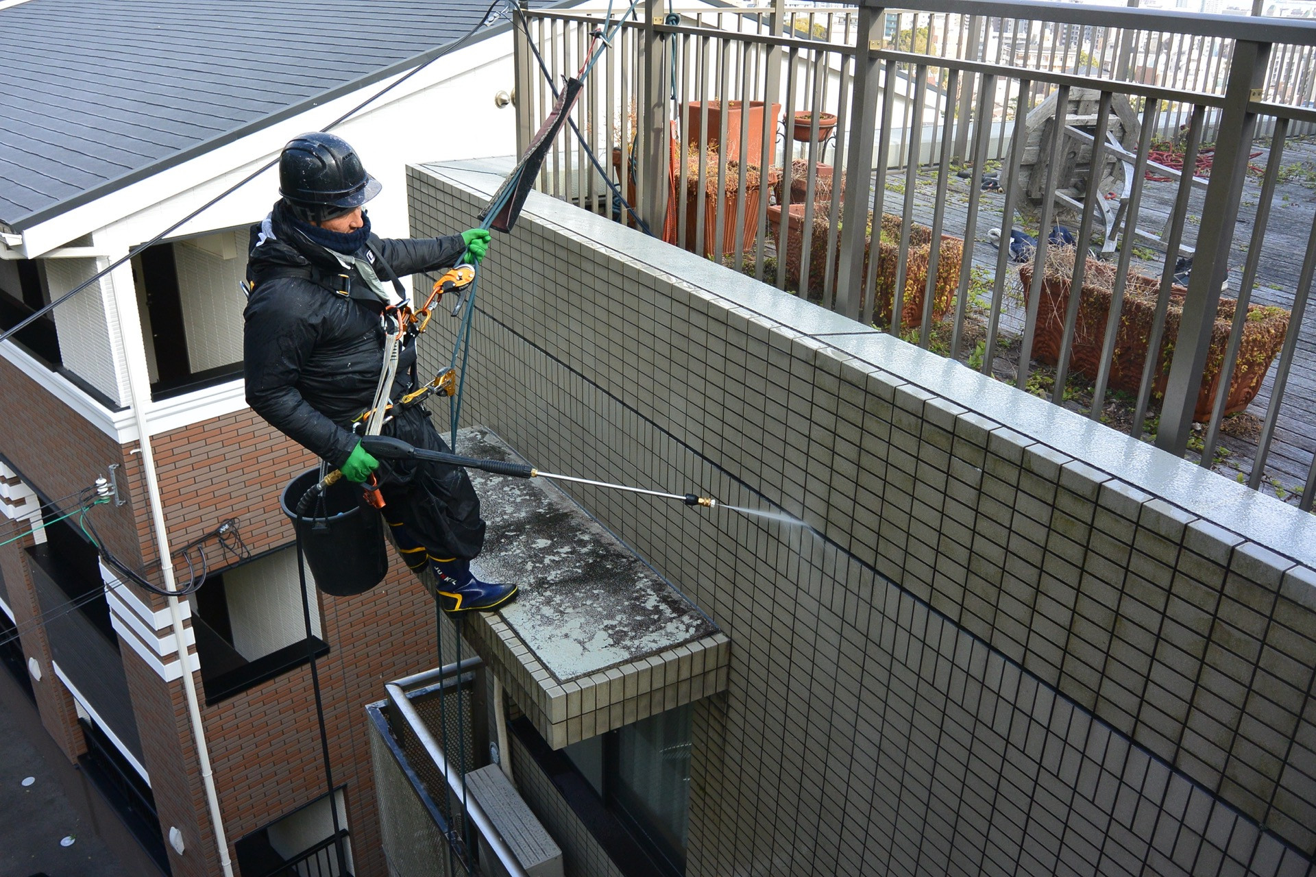 一般的な外装のメンテナンス工事などに用いられる足場を組まない、ロープアクセル工法やブランコ工法とも呼ばれる特殊工法にて作業をする穂高外装メンテナンス合同会社では、その工法の利点を活かした施工プラン・ご予算をご提案させていただきます。利点としては、仮設を設置する分の費用を低減できます。他にも足場を組んでいることで発生する日程の縛りを考える必要がないための目には見えにくいアドバンテージもあります。
