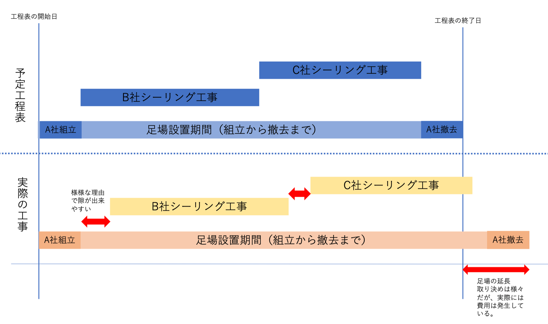 延長された足場の費用の取り決めは様々です。お客様に負担のかからない場合も多いでしょう。しかし実際は費用が発生しています。