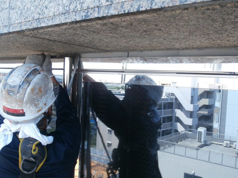 例えば、建物の構造上の原因や乾燥によるひび割れなどもあり、それら原因を無視した表面上の修繕を行っても別の箇所でまたひびが入ってしまう可能性も少なくありません。そのため、補修だけではなく、メンテナンス施工にも力を入れており、シーリング工事にてサッシなどの建具や金属製金物とコンクリート部分にシーリング材により防水処理などを施させていただきます。