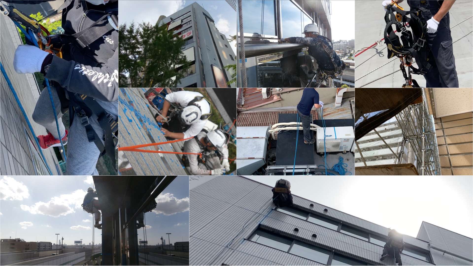 いつでも、ビル,マンションの高所にアプローチできるロープアクセスという工法